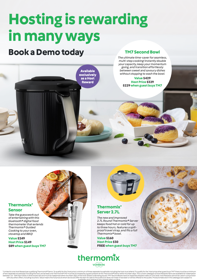 It's the perfect opportunity to answer the question 'What does Thermomix® do?' and any other questions or queries you may have about how Thermomix® will work for you. By hosting a Cooking Experience, you can qualify for special rewards (we call these "Host Rewards").