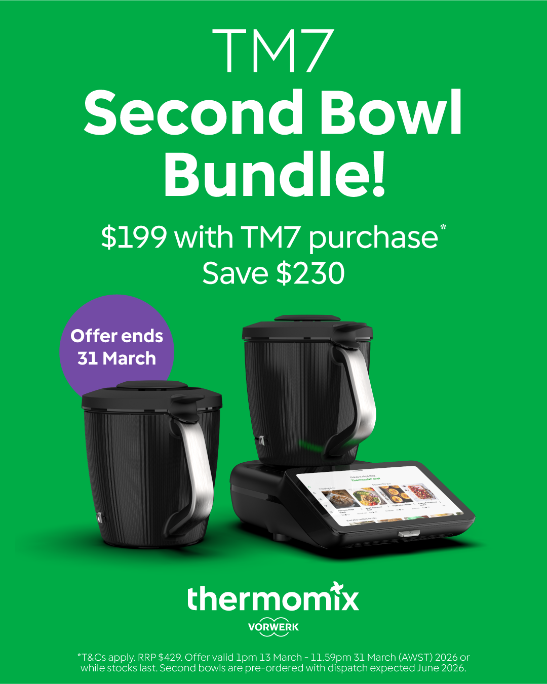 Bundle a Thermomix® 2nd Bowl, Blade and Lid Set with your TM7 purchase for just $199.